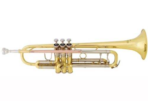 An excellent student or step-up instrument, the TR500 Trumpet combines a .460" medium-large bore with a red brass mouthpipe pipe for durability and ease of tone production. Nickel-silver pistons provide smooth action while holding up well to the rigors of band programs. The TR500 also features adjustable third-slide finger ring with screw stop, 4-11/16" two-piece yellow brass bell, two water keys, clear lacquer finish, enclosed top-action valve springs, and first slide thumb hook. It comes with a genuine Vincent Bach 7C mouthpiece and deluxe hard-shell carrying case.